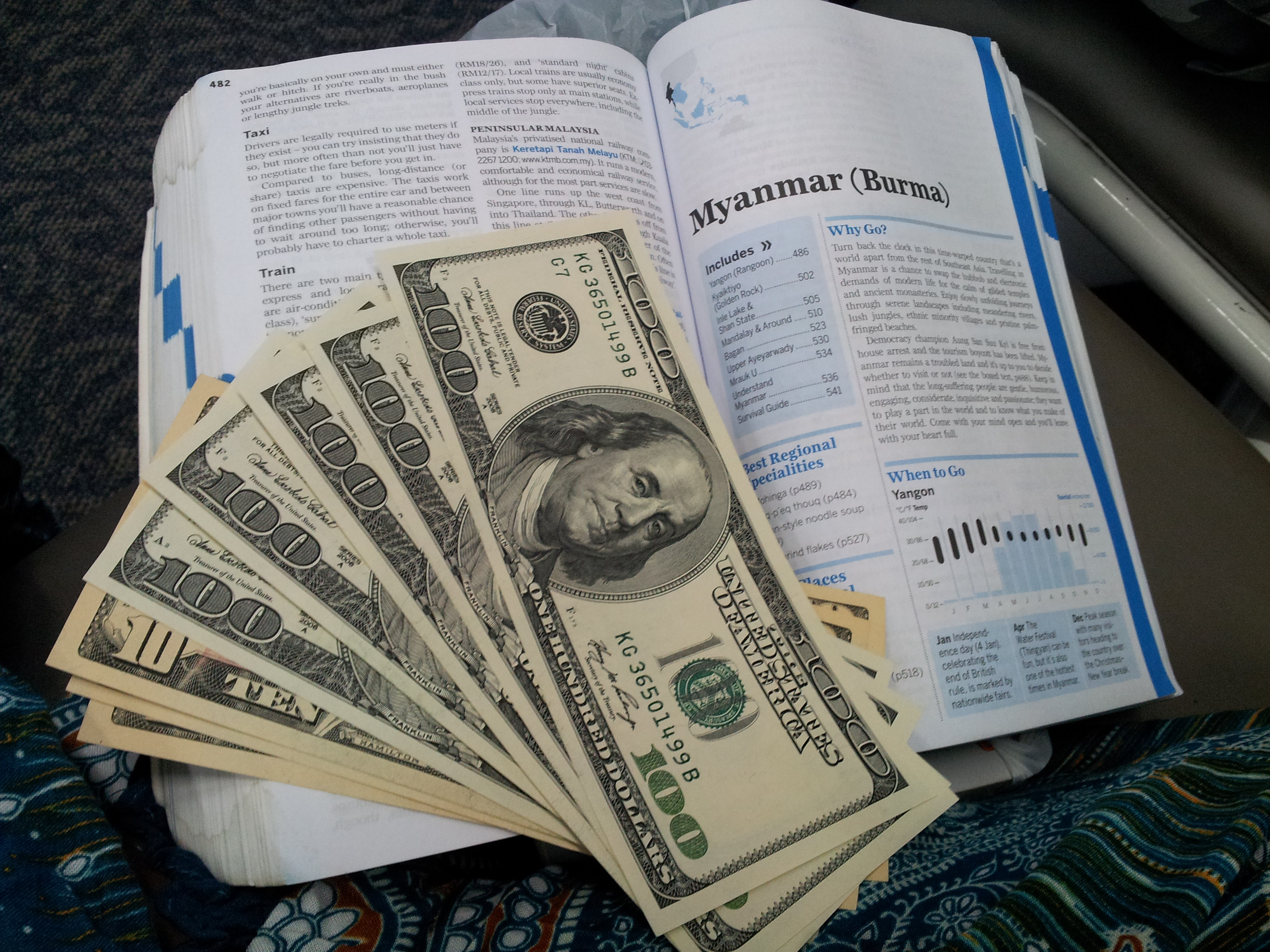 Preparing to go to Myanmar is arguably more difficult and complicated than actually being there. Aside from the visa issues in Bangkok, we also have to find crisp and clean US Dollars to bring because apparently in Myanmar, foreign bills become void if you crease, fold, rip, mark, or use them in any way except as bookmarks. Luckily, a bank in Siem Reap had the “new dollars” we needed. I used to suspect that people with a pocket full of $100 bills were drug dealers. Now I know they’re just people who recently came from Myanmar, the holder of all our clean money.
