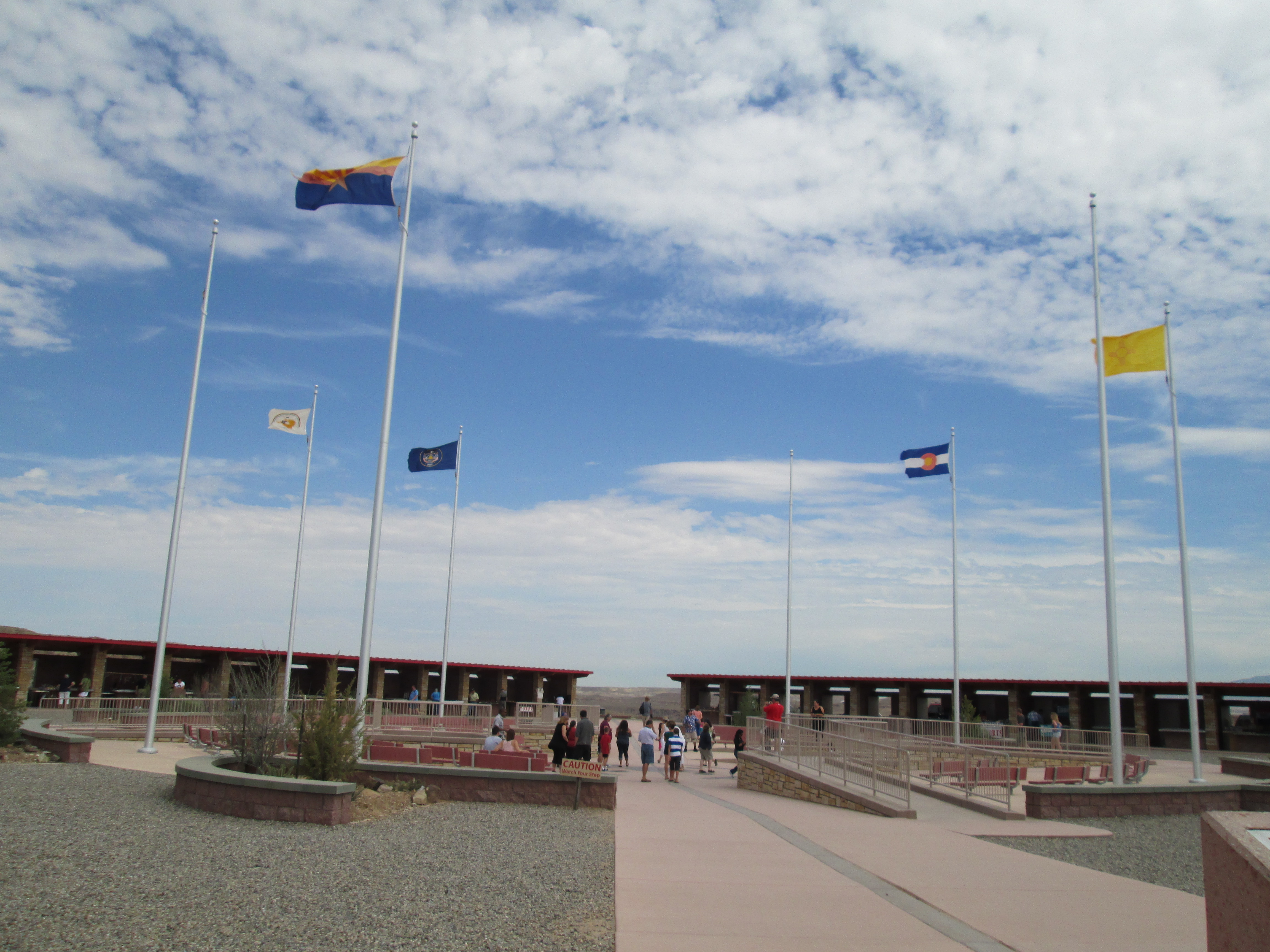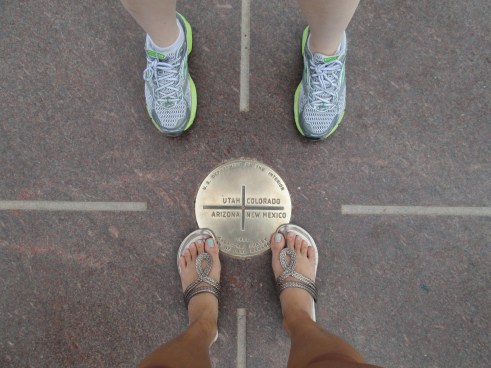 Following Santa Fe, we had an epic 23-hour day of traversing through five states. For full disclosure, four of those states were checked off simultaneously at (wait for it…) the Four Corners. We were really excited to see this landmark, but it was not at all what we expected. The location is indeed in the middle of nowhere, but the corner itself is built into this touristy site with some flags and a giant circle of Native American vendors selling souvenirs and junk food. They also charge $3 per person to enter!