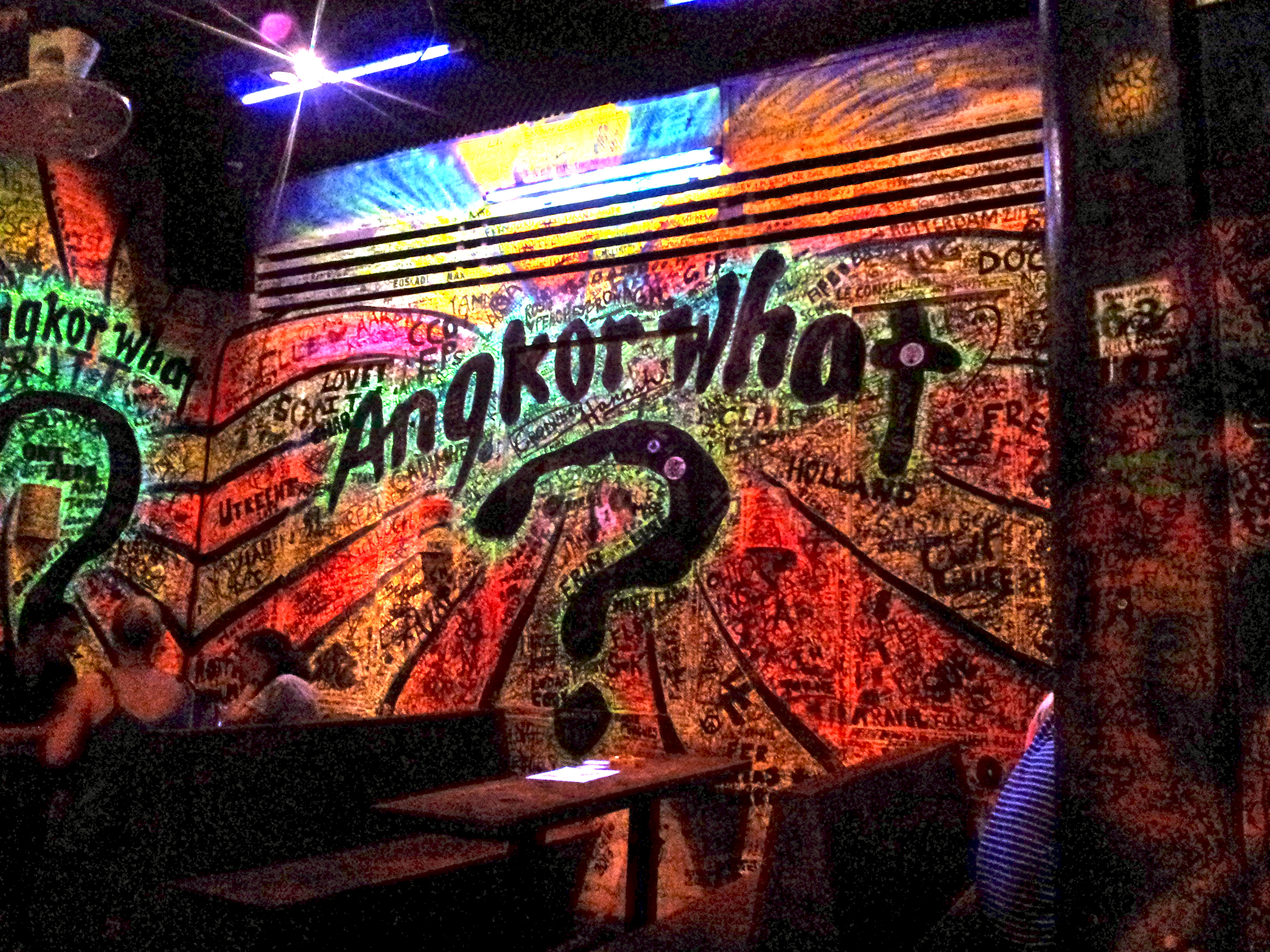 When we return to our hostel that evening, the owner informs us that our original driver came by and dropped off the bag with camera that we left on his tuk-tuk. Cambodia, you have restored my faith in people after the mess of Bangkok! We top off our day of temple-hopping with a night of bar-hopping on Pub Street (self-explanatory name). To give you an idea of how affordable (see: dirt cheap) SE Asia can be, we only patronize bars serving 50-cent draft beers. $0.75 or $1, you say? Nope, move on.