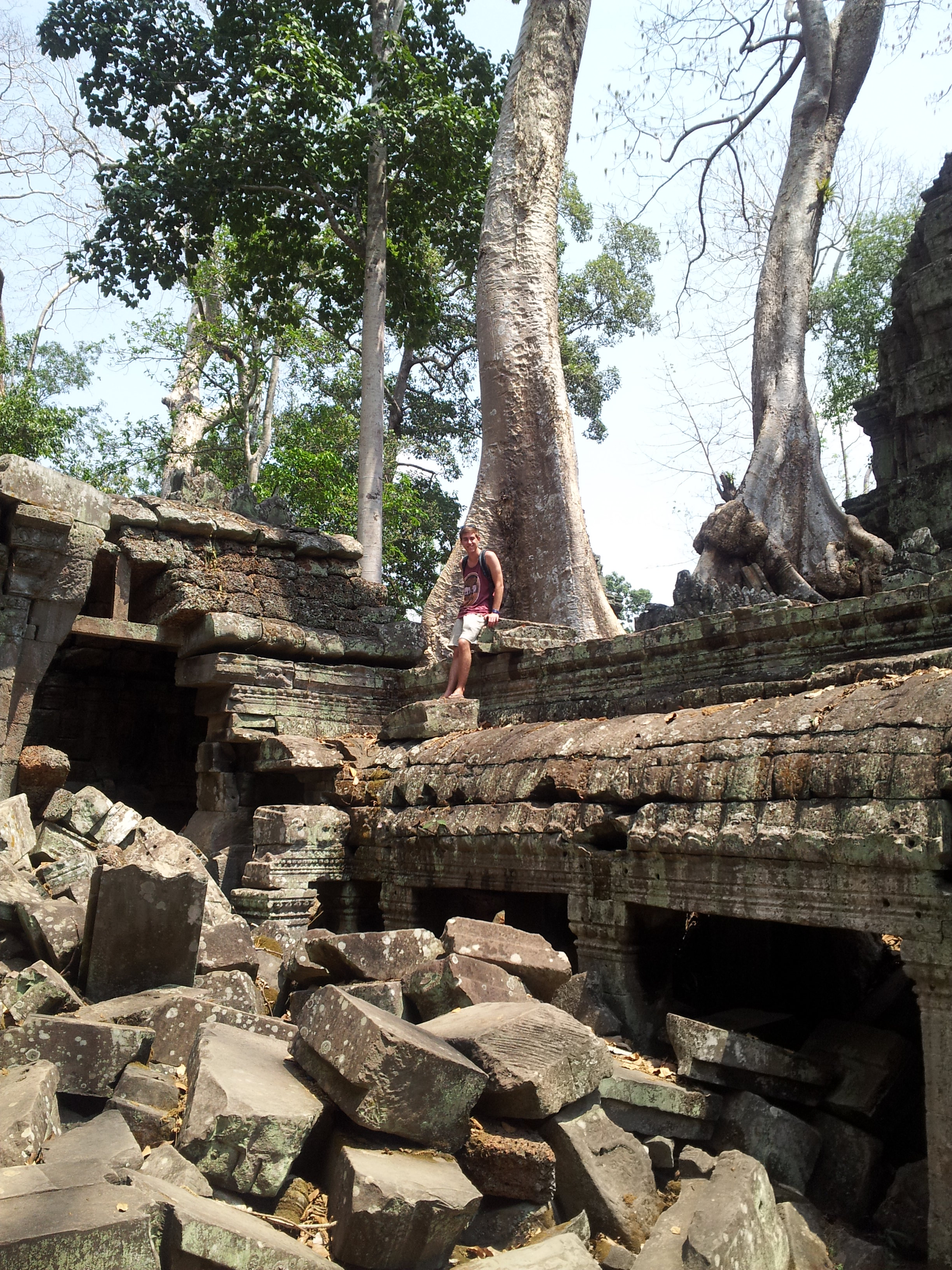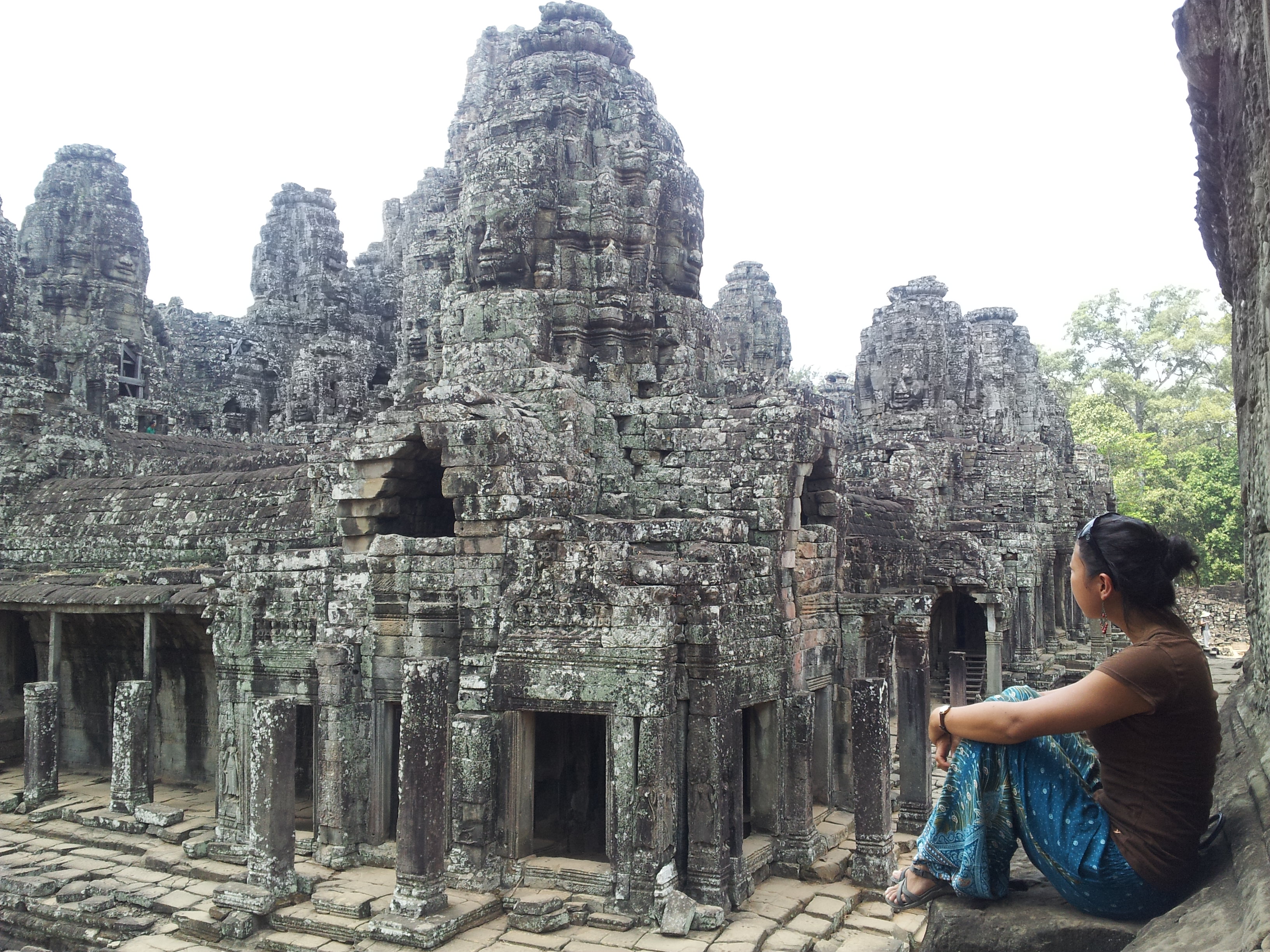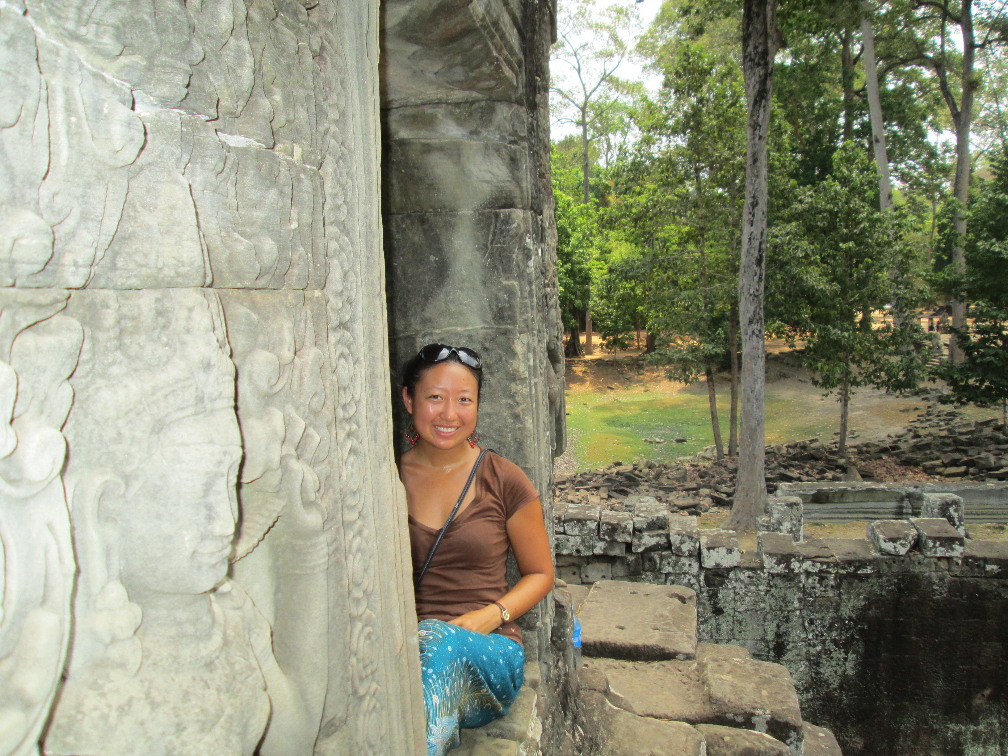 Bayon is my personal favorite of the temples. It’s not as grand as Angkor Wat, but it’s artistically stunning. Bayon is carved full of stone faces, which many say resemble Jayavarman VII, the Khmer king who built the temple. The amazing thing about visiting Angkor is you’re allowed seemingly unrestricted access to the sites. You can touch, crawl, and climb every nook and cranny of these centuries-old relics, and no one is there telling you not to. It’s incredible! Arne and I climb to the top of a window ledge and sit for a long time taking in this view: