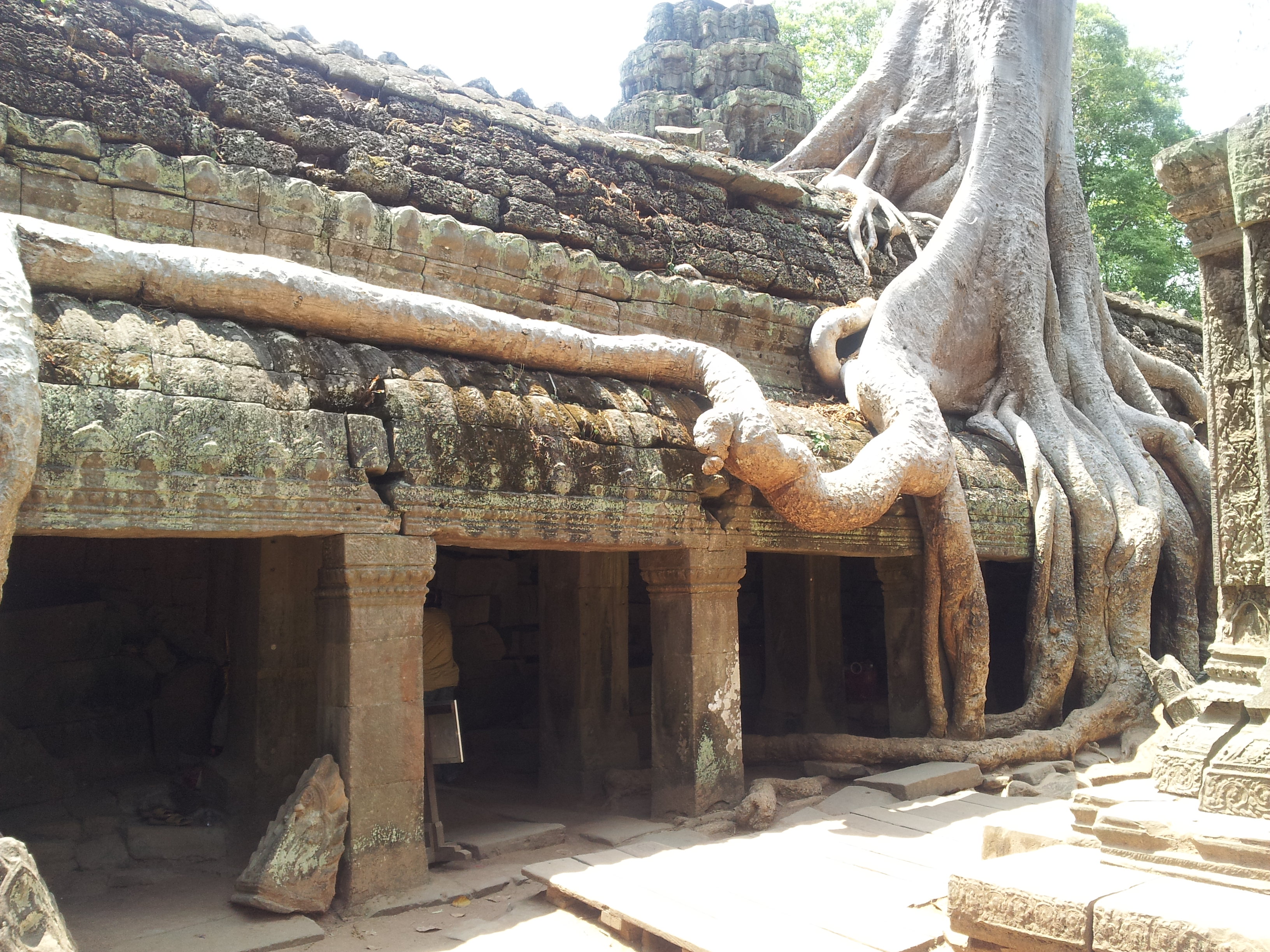 Ta Prohm is one of our later stops of the day. It’s famously known as the “Tomb Raider Temple” where Lara Croft AKA Angelina Jolie shot those movie scenes. The temple is overrun with trees and other forms of nature taking its course. By this time it’s mid-afternoon, easily over 90 degrees, and we have been at it for eight hours. Angkor temple-hopping is not for the weak.
