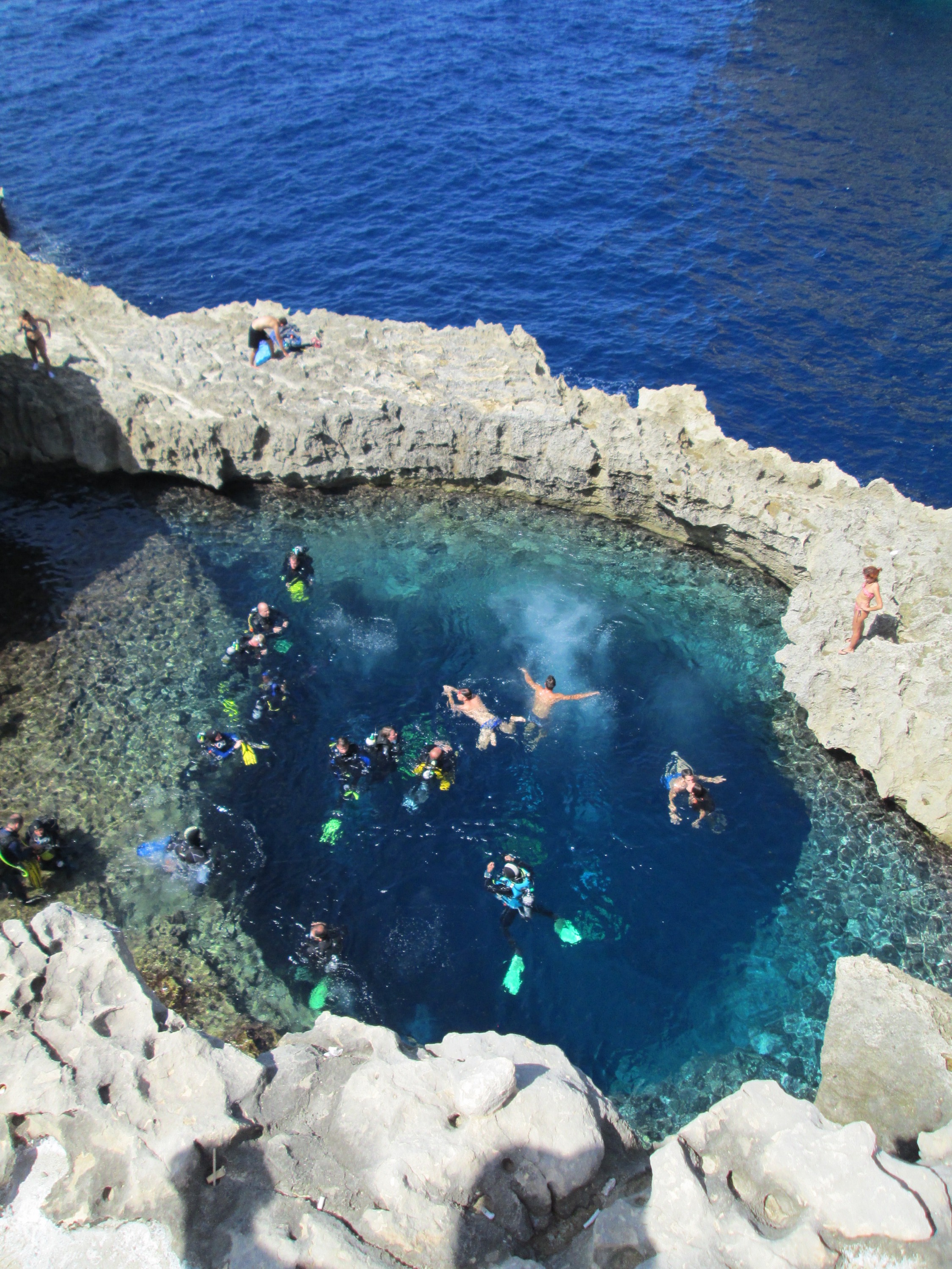 I have a few awe-inspiring moments in Gozo. One night Sascha, a German friend from the guesthouse, and I go to Azure Window for sunset. It’s a cloudy day so we don’t see much of a sunset, unfortunately, but the scenery is stunning nonetheless and we sit at the very tippy top of the arch looking out over the open sea and talking until it’s pitch black. A couple days later on the boat out for a last dive, I see the Azure Window from afar on the water and instantly picture Sascha and I sitting atop there, like two tiny specks of dust at the end of the world. How amazingly blessed we are!