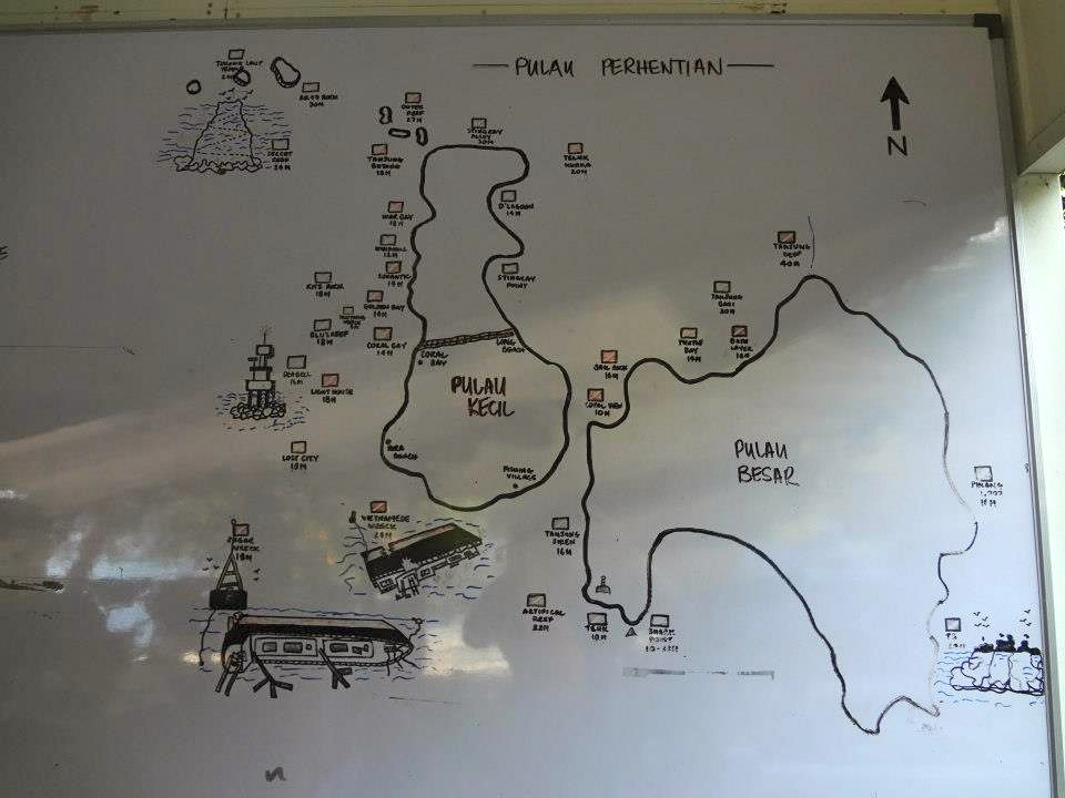 Map of Pulau Perhentian and dive sites (Photo credit: Julia Thompson)